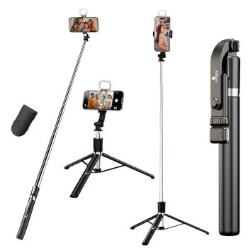 Kratos K9 Selfie Stick Tripod With Light, 67 inch /170CM Reinforced Tripod for Mobile Phone, Multi-Functional Bluetooth Long Selfie Stick for Travel,Vlogging,Compatible with iPhone and All Smartphones