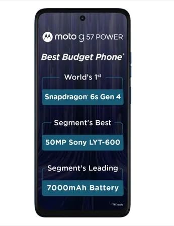 Motorola G57 Power 5G (Corsair, 8GB RAM, 128GB Storage) | Snapdragon 6s Gen 4 Processor | 6.72″ FHD+ Display | 50MP LYT-600 + 8MP Ultrawide | 8MP Selfie Camera | 7000mAh Battery, 33W TurboPower | IP64