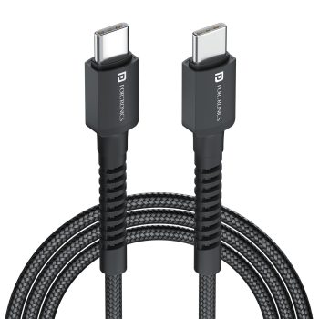 Portronics Konnect X 60W Unbreakable Nylon Braided Cable, 2M Fast Charging Cable For iPhone 15 Series, iPad, Samsung Galaxy (Black)