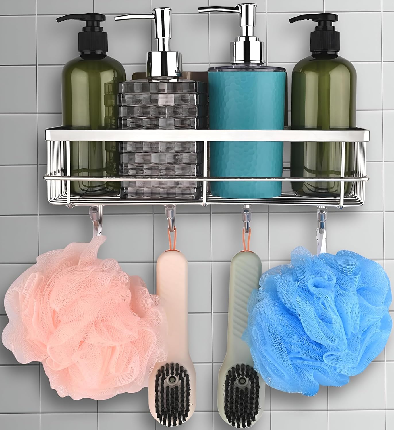 Generic Name Self Adhesive Bathroom Shelf With 4 Hooks