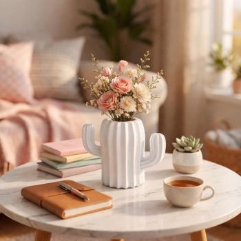 Product description : Add a touch of modern charm to your décor with this cactus-shaped decorative vase. Designed with clean vertical lines and a contemporary silhouette, this vase blends effortlessly with minimal, modern, and cozy interiors. Crafted from durable plastic, it is lightweight yet stable, making it perfect for daily décor use. Place it on a coffee table, bedside table, bookshelf, or office desk to instantly elevate your space. The vase is best suited for artificial or dried flowers and works beautifully as a standalone décor piece as well. Whether you’re styling your own home or looking for a tasteful gift, this modern cactus vase is a stylish and versatile choice.
