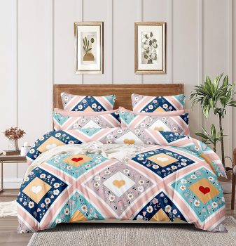 Cotton Single Size Elastic Fitted Single Bedsheet (72x48x6) with 1 Pillow Covers (Multi Heart)