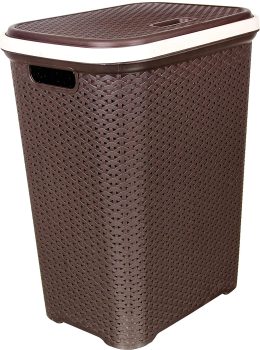 Nilkamal Laundry Basket Cloth Hamper Cutout Design With Foldable Handle For Washing Bin Dirty Clothes Storage,Plastic Rack, Chocolate Brown 50L