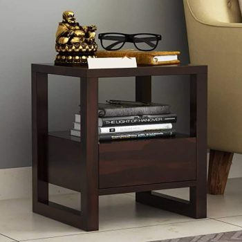 Sheesham Wood Bed Side Table with 1 Drawer & Shelf Storage Wooden Nightstand End Table for Bedroom Home (Walnut)