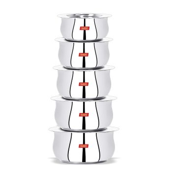 Sumeet Stainless Steel Cookware Set With Lid, 5 Piece (Steel), 2.4 Liter, Silver