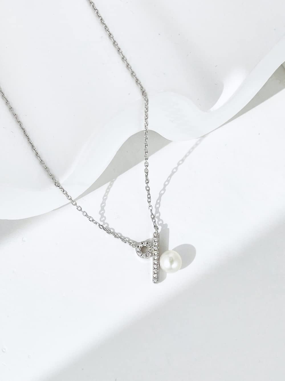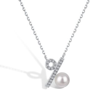 MISS JO 92.5 Sterling Silver Pave Pearl Necklace, Percent Sign with Pave Setting Pendant, Pearl Edit Collection, Gift for Girlfriend, BIS Hallmarked