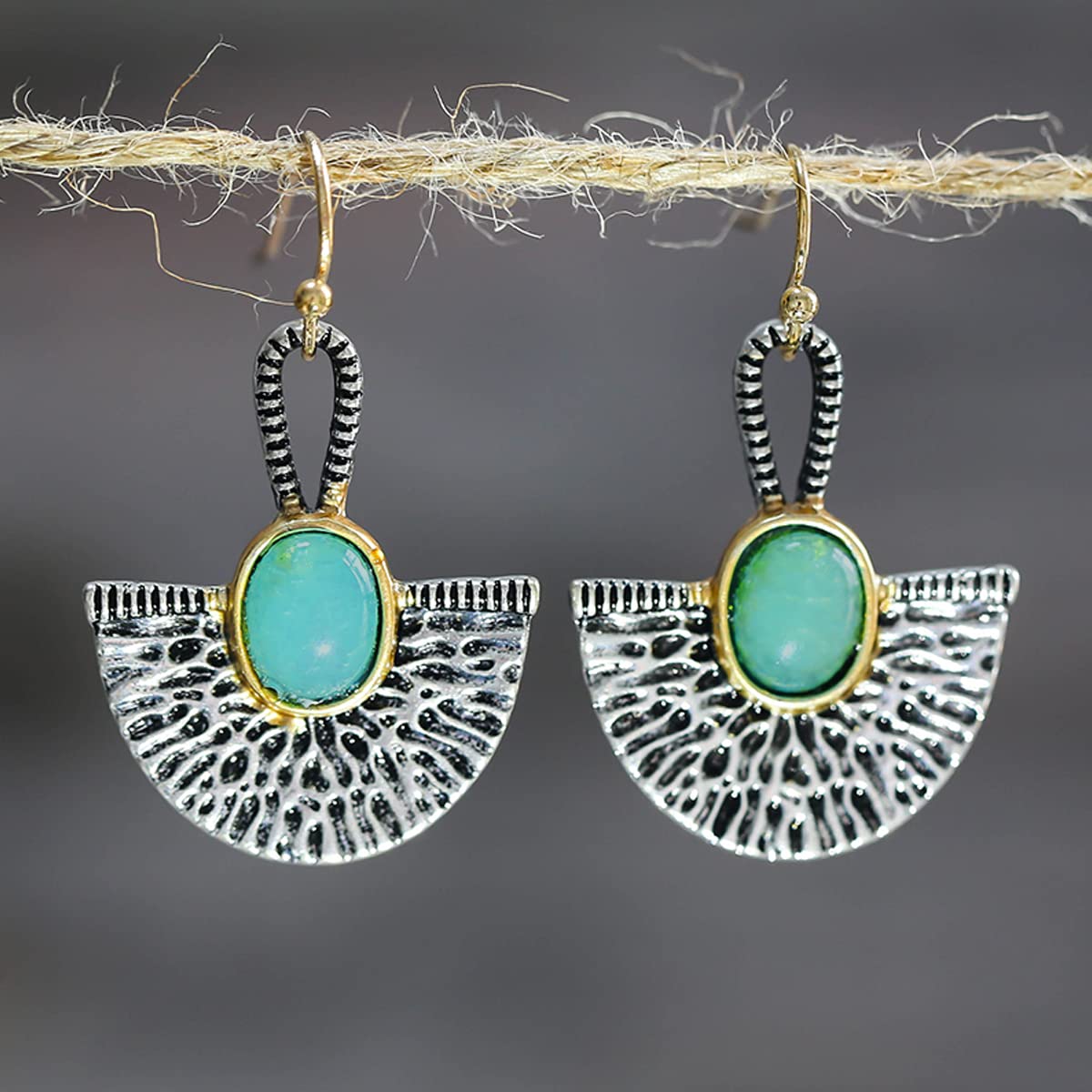 Yellow Chimes Earrings For Women Green Stone Studded Black Half Circle Designed Drop Earrings For Women and Girls