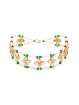 Zaveri Pearls Green Beaded Floral Kundan & Pearls Bridal Head Chain For Women-ZPFK14490
