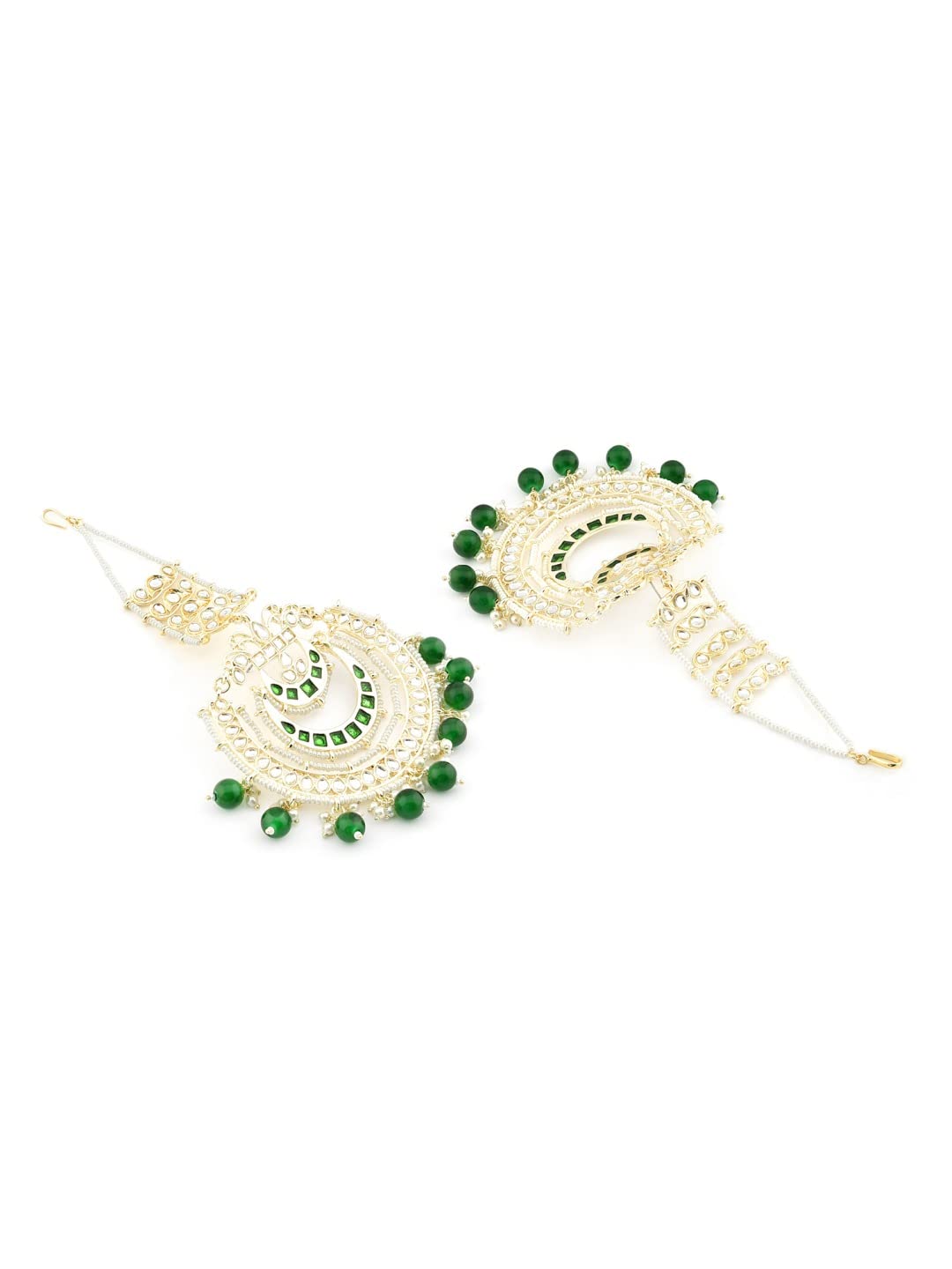 Zaveri Pearls Green Beads Traditional Kundan Chandbali Earring With Ear Chain For Women-ZPFK12201