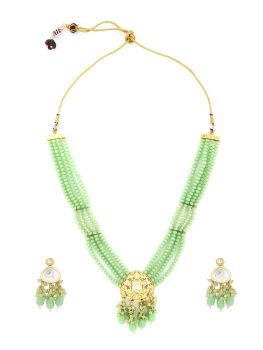 ZAVERI PEARLS Green Multistrand Beaded Traditional Kundan Necklace & Earring Set For Women-ZPFK13542