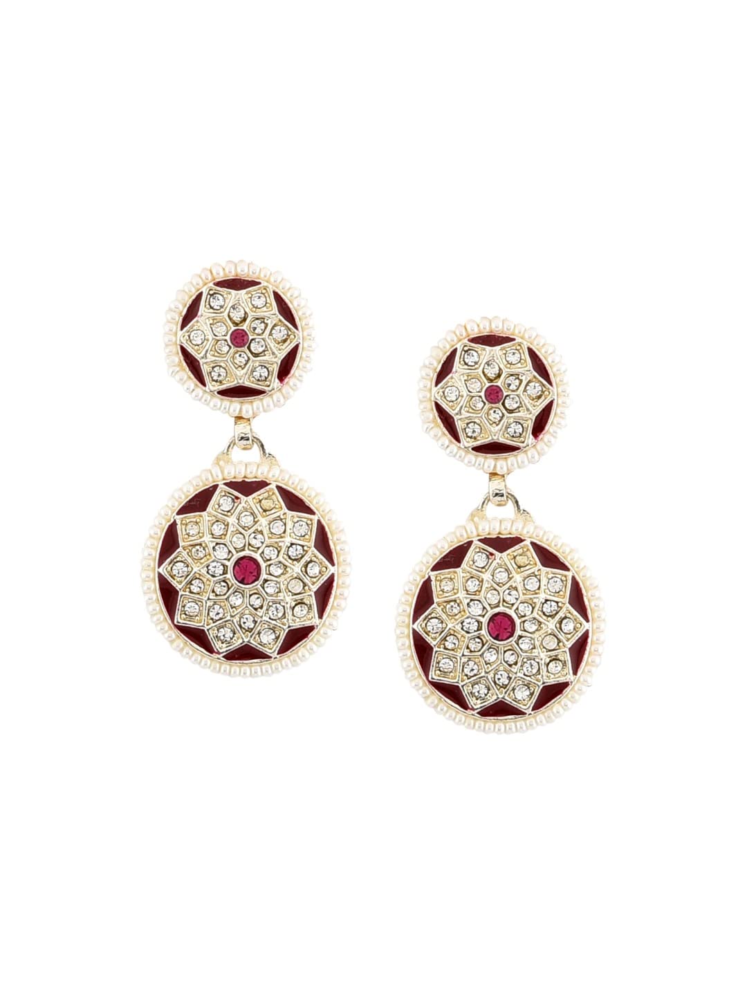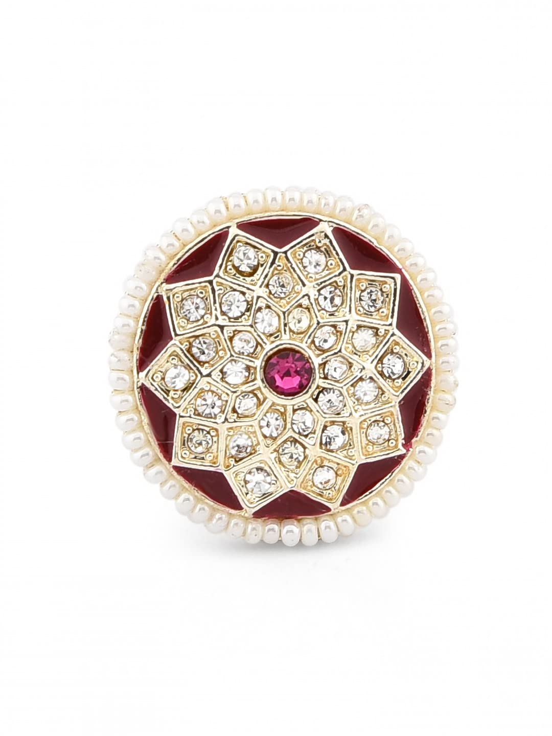 ZAVERI PEARLS Pink Enamelled Dazzling Diamonds Embellished Earring Maangtikka & Ring Set For Women-ZPFK12214