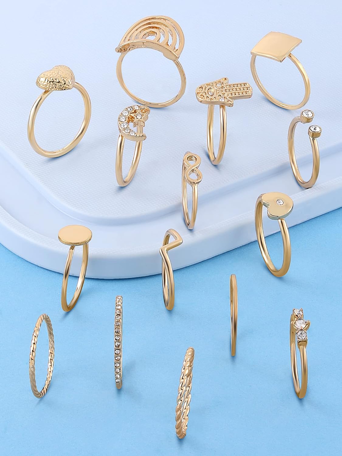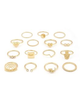 ZAVERI PEARLS Set of 15 Gold Tone Contemporary Stackable Rings For Women-ZPFK13629