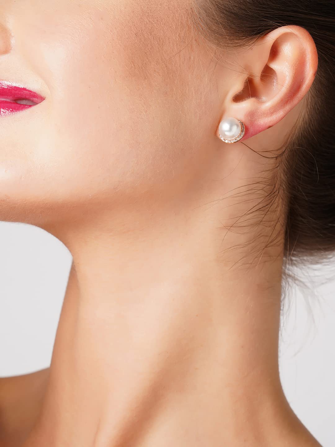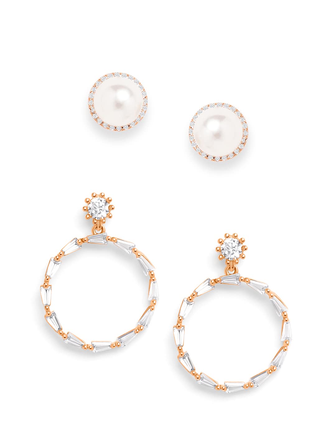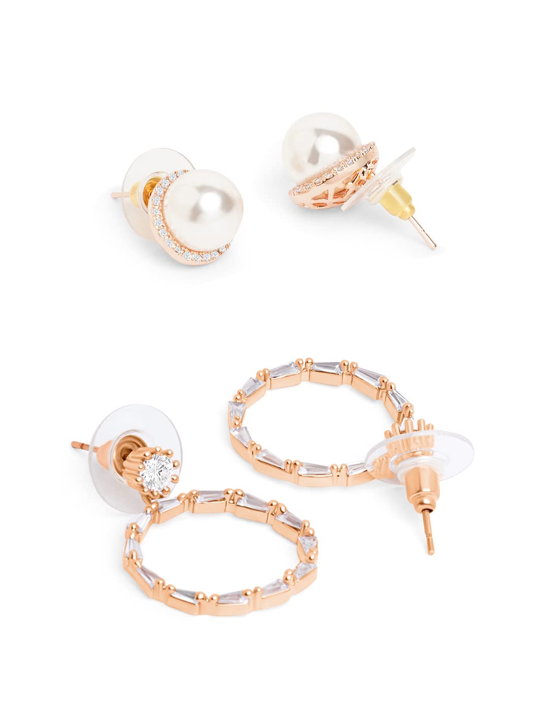 Zaveri Pearls Set of 2 Rose Gold Cubic Zirconia Contemporary Drop Earrings For Women-ZPFK13449