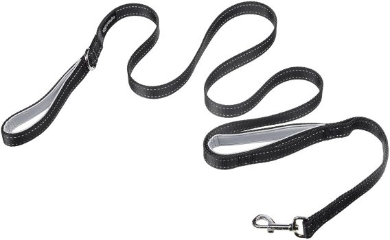 Amazon Basics Double Handle Light Reflecting Dog Leash | 6 Feet/ 182 cm | Black | Strong Hook for Training and Walking Dogs | 2 Padded Handles